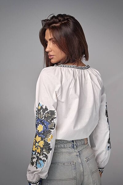 Подробное описание: Жіноча вишиванка літня сучасна мережка блуза вишита сорочка чорна біла