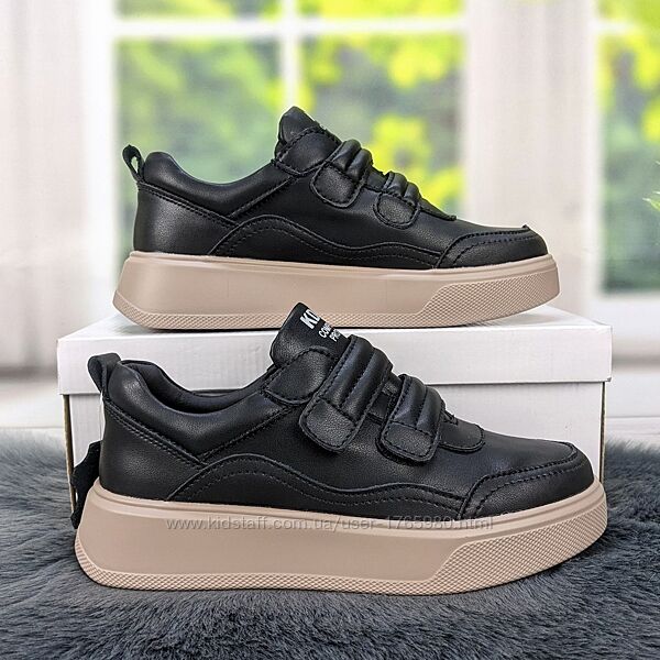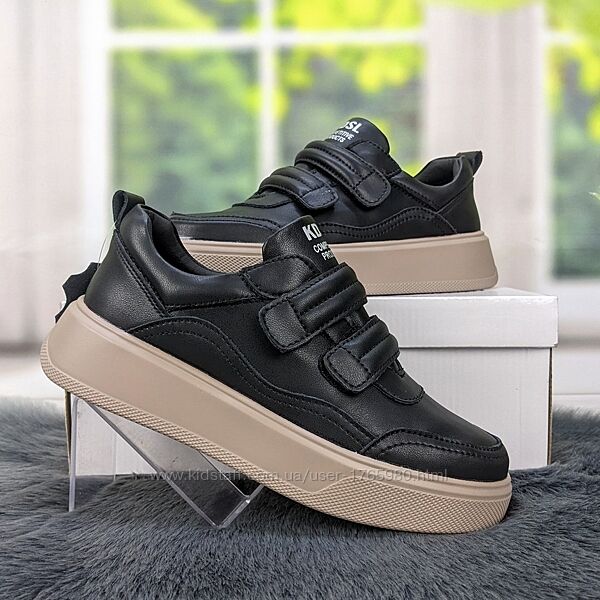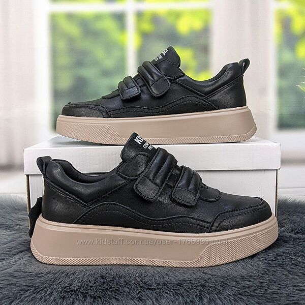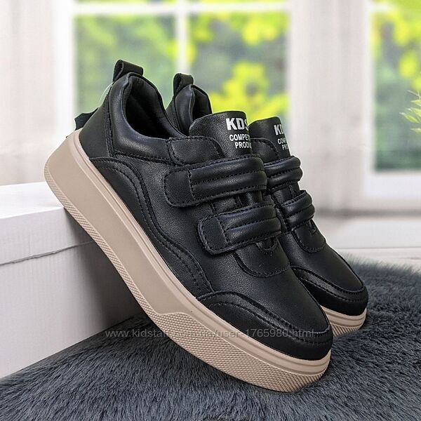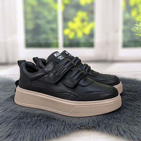 Подробное описание: Кроссовки женские кожаные черные на липучках KDSL 43622