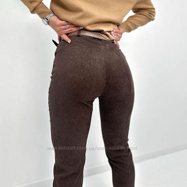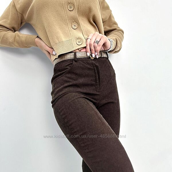 Штани з мікровельвету – справжній тренд сучасного гардеробу. Вони є відмінним вибором до створення як ділових, і повсякденних образів. Цього сезону особливо актуальні моделі з витонченою текстурою мікровельвету, які дорого виглядають і дуже приємні на дотик.Стильні штани "Axel" ідеально сідають по фігурі, підкреслюючи її переваги. Прямий фасон дозволяє поєднувати їх з будь-якими предметами гардеробу: блузами, водолазками, боді, жакетами та ін. Зручний пояс на гудзику та висока талія гарантують ідеальну посадку. Додатковою перевагою є бічні кишені, які додають функціональності та практичності.