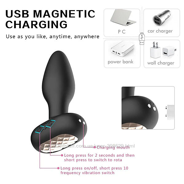 Подарите себе новые ощущения, которые не подарит ни один партнер. Это устройство для взрослых имеет двойной эффект: не только вибрирует в 10 режимах, но и вращается 6 разными способами. А возможность дистанционного контроля пультиком сможет разнообразить вашу интимную жизнь и внести в нее элемент игры и даже превратить ее в эротическое приключение для двоих! Используйте ее где угодно, ведь секс может быть не только в спальне: в офисе, в отпуске, в поездке или душе. Маленький размер позволяет брать вибратор с собой, а хорошая степень влагозащиты – легко мыть под водой. Используйте его не только, как анальную втулку, ведь это еще и стимулятор эрогенных зон, сосков, клитора, и точки G. Дайте волю своей фантазии. Используйте его не только для мастурбации, но и для массажа. Обратите внимание вибрации и ротации на пробке можно использовать как отдельно, так и вместе.Характеристики: