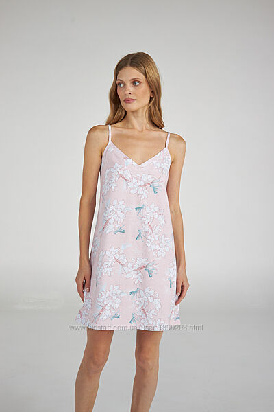 Наш інтернет магазин "Francheska" пропонує купити жіночу нічну сорочку з колекції "FLORA" від українського виробника ТМ ELLEN.Нічна сорочка виготовлена з м´якого бавовняного полотна рожевого кольору в білий квітковий принт, має вільний силует, на тонких регульованих бретелях і з V-подібним вирізом горла. Довжина моделі вище колін. Сорочка дуже красива, зручна та комфортна, відмінний варіант одягу для дому та подарунка коханій та близькій людині.