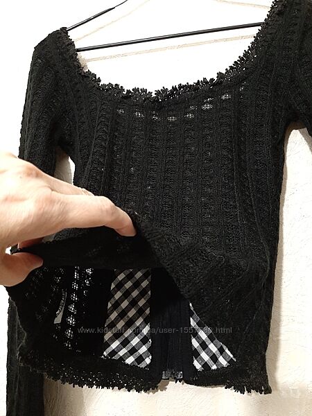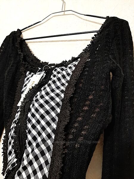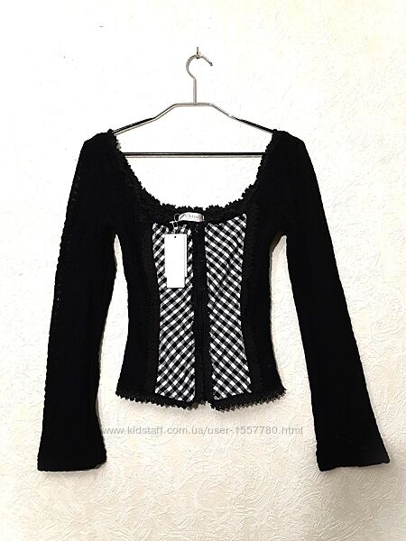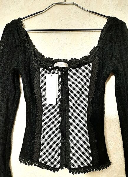 Красива блуза в клітинку чорна/біла тканина + трикотаж ажурний, на блискавці, довгі рукави, жіноча.Нова з картонною етикеткою.