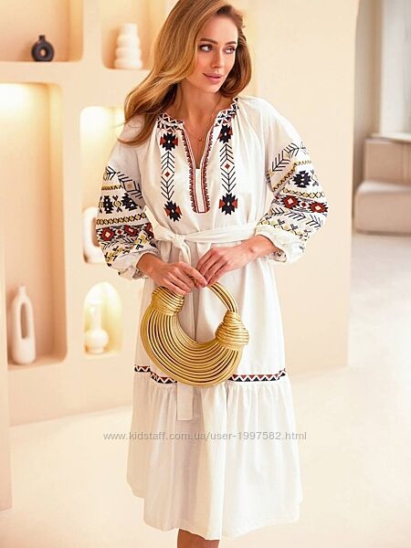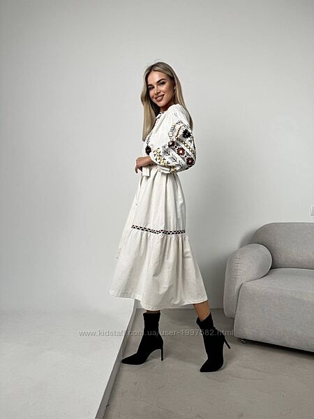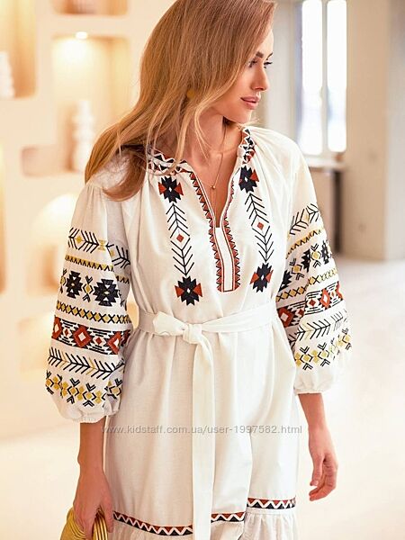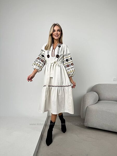Подробное описание: Жіноча вишита сукня довга плаття з вишивкою вишиванка біла з поясом