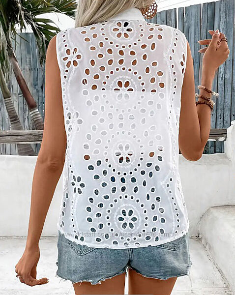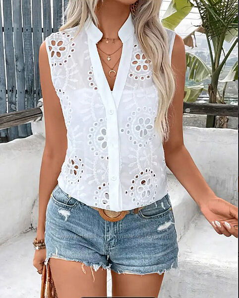 Блузка белая, летняя, женская, без рукавов хлопок прошва 48 р
