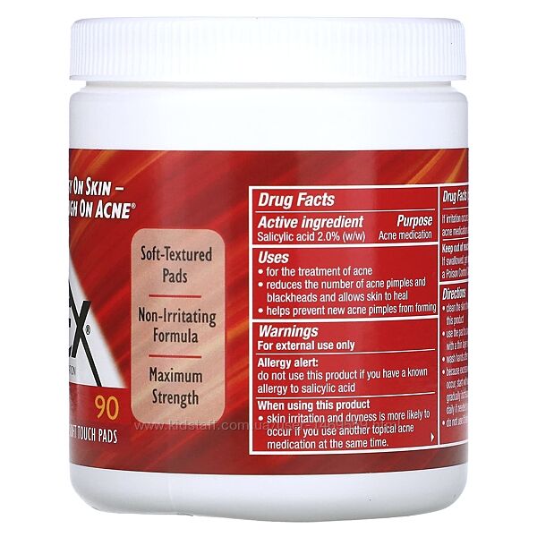 Кожна подушечка має особливу текстуру, яка забезпечує прекрасне очищення та приємне відчуття. Ця подушечка підійде для будь-якого завдання: чи бажаєте ви використати очищувальну сторону, чи гладку та м’яку. Формула подушечок Stridex не містить спирту, тому ви отримуєте доведений ефективний засіб для боротьби з акне, що не викликає подразнень.