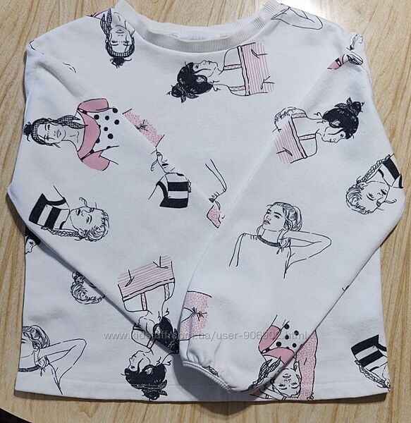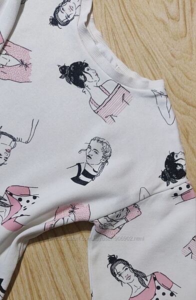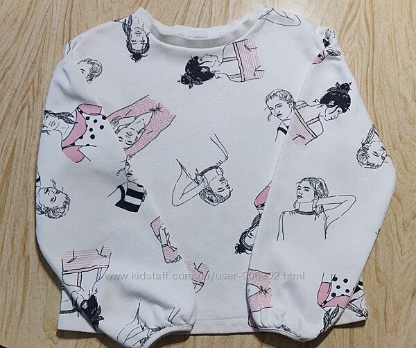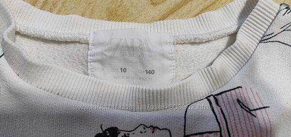 Стильний укорочений світшот Zara. Для дівчинки 9-10 років , підійде на зріст 128 -134-140см . По бірці - 140см. В середині з легким начосом. Прикрашений оригінальним принтом.Вільний крій.В ідеальному стані.Повністю відповідає фото.