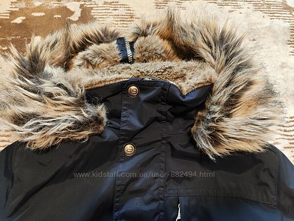 Куртка зимова для хлопця. Фірма Adventure. Колір темносиній. Капюшон знімний. Хутро оздоблення штучне.Дуже зручна і тепла куртка, відводить зайве тепло, вітронепроникна.