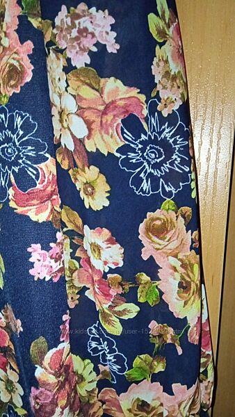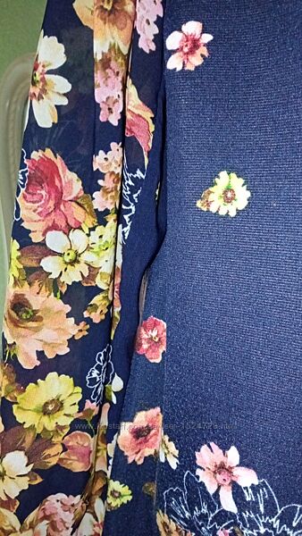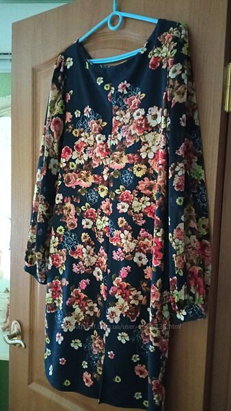 Трикотажне плаття з вкладками шифону на рукавах та грудях. Ширина плечей 38 см,ПОГ-51 сми ,талії 47 см,бедер 53 см.Довжина рукава 65 см.Довжина плаття 98см.Якщо товар по якісь причині не підійшов , можливий обмін на мої лоти.Пересилка за рахунок покупця.
