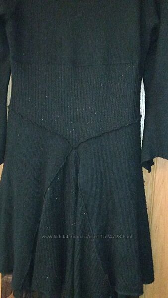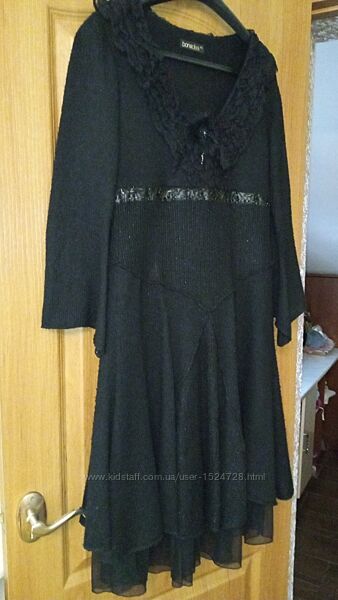 В´язане неординарне плаття. Довжина плаття 100 см,довжина із сіткою 106 см.Довжина рукава 54 см.Ширина плечей 39 см.ПОГ-48 см, талії 44 см.Якщо товар по якісь причині не підійшов , можливий обмін на мої лоти.Пересилка за рахунок покупця.