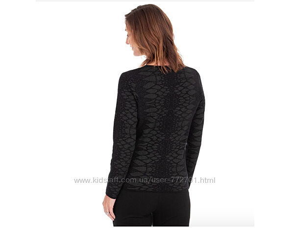 Повседневный вязаный топ черного цвета с изящным рисунком из люрекса, придающим элегантный вид.
