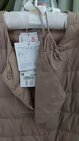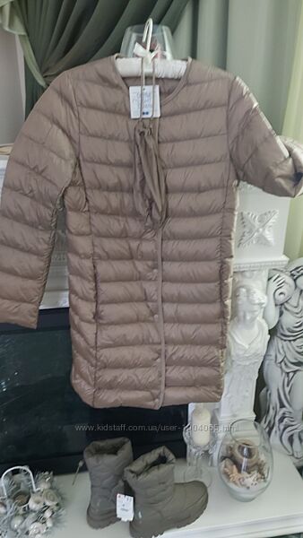 Ідеальний пуховик під верхній одяг. Дуже зручна і універсальна річ. - Зручний V-подібний виріз. - Нова підкладка з тканини, яка не створює статичну електрику. - Зовнішній шар з міцного водовідштовхувального матеріалу. - Компактна куртка в складеному вигляді до поміщається в спеціальний переносний мішечок. - Комір з V-подібним вирізом дозволяє надягати виріб під пальто. - Покращений виріз V-подібної форми - Переносний мішечок прикріплений до внутрішньої петлі з лівої сторони. Матеріал Лицьова сторона: 65% Поліамід, 35% Поліефір. Наповнювач: 90% Пух, 10% Перо. Зворотна сторона: 100% Поліамід. Рекомендації по догляду:Ручне прання в холодній воді. В наявності розміри: М - короткий, S-длинний, пальто, все нове з етикетками.