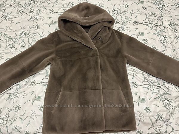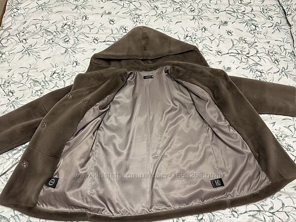 Дуже гарна, кольору капучино, якісна еко-шубка українського виробника. Дуже стильна, гарно і під юбку і під штани. Одягнута 2 рази, тому стан ідеальний. Без дефектів. Є поясок. Заміри на фото. Розмір М-L, раджу орієнтуватися по замірах.Даю посилання на офіційний магазин