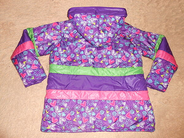 Продам куртку для девочки на рост 152-158-164 см., на возраст 12-13-14 лет.1. Куртка фиолетовая в сердечках на рост 152-158 см.,на возраст 12-13 лет. Длина рукава - 53,5 см., плечико - 13 см.,ширина под рукавчиками - 53,5 см., длина от плечика впереди - 56 см.,длина по спинке - 65 см. Застегивается на змейку (вверху куртки защита из ткани, внизу липучка), с капюшоном (по бокам затяжки для регулирования по ширине,капюшон съемный,на змейке), внизу по бокам два кармашка на змейке, внутри рукавов такая же ткань, как на куртке, поэтому их можно подкатить.Внутри куртки подкладка и синтепон, сзади куртка удлиненная. Куртка тепленькая и не тяжелая. Цена: 300 грн.