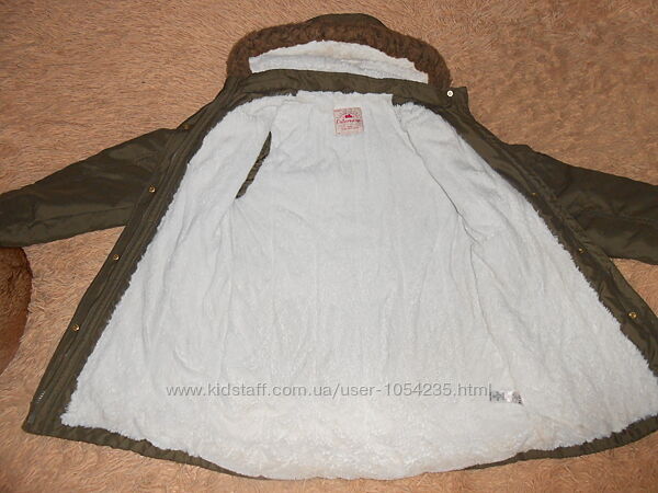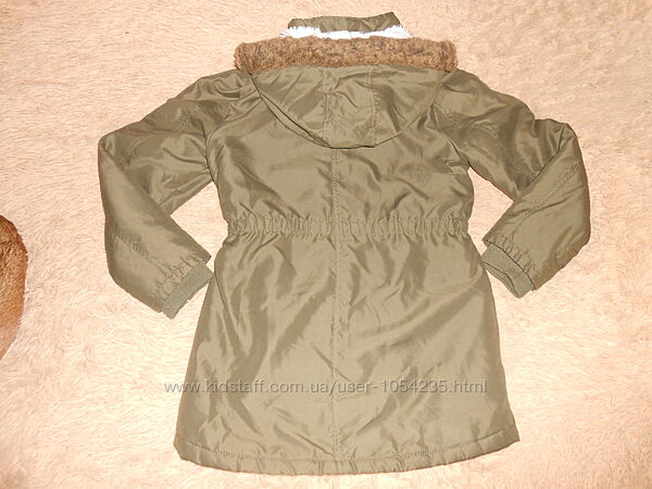 2. Куртка зеленая на рост 158-164 см., на возраст 13-14 лет "George": длина рукава - 60,5 см., плечико - 12 см.,ширина под рукавчиками - 46 см.,длина от плечика - 74 см. Застегивается на змейку и кнопочки, с капюшоном,низ рукавчиков на широкой резиночке, впереди внизу два кармашка на кнопочках,на поясе широкая резиночка.Внутри куртки меховой утеплитель и синтепон, капюшон внутри на меху,на капюшоне меховая опушка, внутри рукавчиков подкладка.Куртка тепленькая. Материал: 100% полиэстер. Цена: 300 грн.