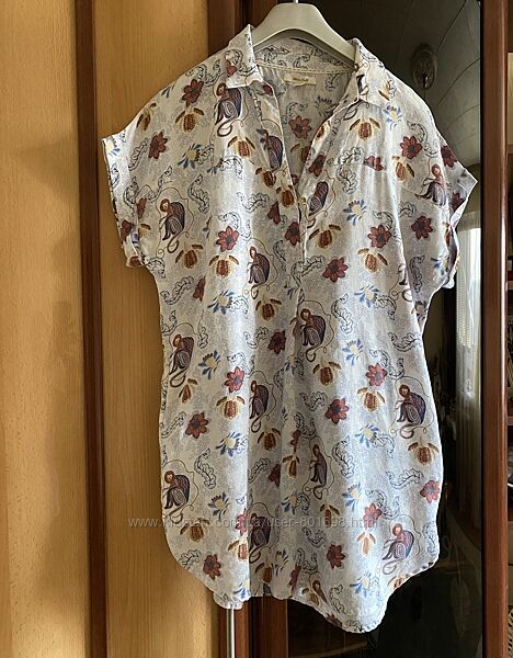 Льняное платье туника WHITE STUFF.Красивый принт в обезьянках