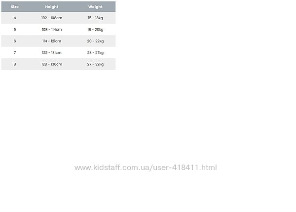 | Рост | 116 см, 122 см, 128 см, 134 см |