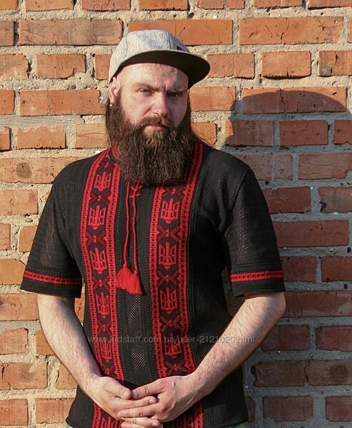Футболка вишиванка вязана чоловіча чорна, вишиванка з коротким рукавом