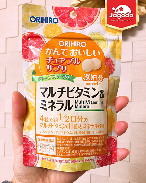 Жувальні мультивітаміни та мінерали ORIHIRO - оптимально збалансований комплекс у вигляді жувальних цукерок зі смаком грейпфрута, для підтримки краси та здоров´я, містять 11 вітамінів та 6 мінералів. Мультивітаміни та мінерали ORIHIRO зміцнюють імунітет, наповнюють організм усіма необхідними для прекрасного самопочуття речовинами. Особливо важливо приймати цей комплекс в осінньо-зимовий період, коли потреба у важливих мікроелементах набагато вища, ніж улітку, а отримати всі необхідні речовини з продуктів харчування неможливо.