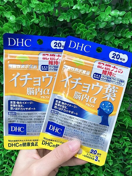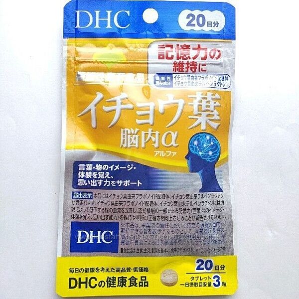 Біодобавка DHC «Гінгко білоба альфа» містить два типи функціональних компонентів, отриманих з гінкго білоба (Флавоноїдний глікозид гінкго білоба 43.2 мг у добовій дозі, Терпеновий лактон із гінкго білоба 10.8 г у добовій дозі. ), покращують мозковий кровообіг та підтримують пам´ять. Комплекс направлено на покращення когнітивних функцій мозку, пам’яті та здатності до концентрування уваги. Препарат знижує рівень холестерину в крові, нормалізує тиск, зменшує запаморочення, головні болі, шум у вухах і має антиоксидантні властивості . Ефективно використовувати при розладах уваги та пам´яті, зниження швидкості мислення та підвищених розумових навантажень, порушення сну.