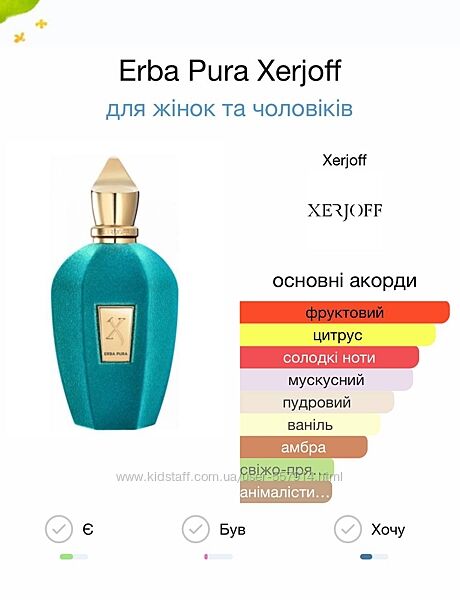 Xerjoff Erba Pura Парфумована вода - 80 грн/1 млАромат в одному напрямку с Terenzi Kirke.