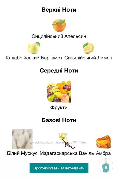 Верхні ноти зустрічають вас калабрійським бергамотом, сицилійськими лимоном і апельсином... Яскравий, смачний і соковитий посмак.