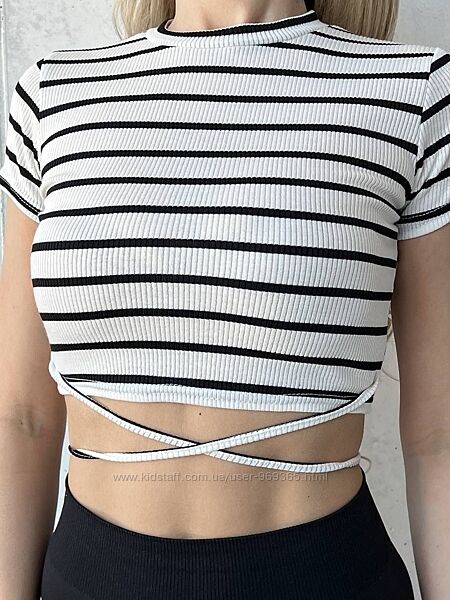 Подробное описание: Стильний топ в полоску с завязками, рубчик