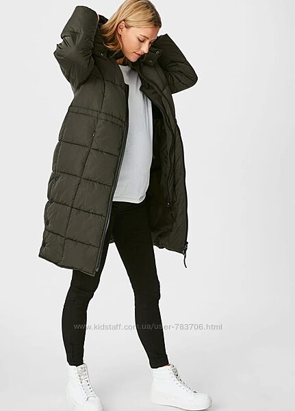 куртка слинг для беременных и мам C&A Германия C&A – универсальный бренд для всей семьи. Основным достоинством одежды и обуви этой марки можно по праву назвать ее качество и долговечность за разумную цену. Стеганое пальто для беременных из гладкой ткани со съемным капюшоном и детской вставкой на молнии. Боковые карманы на молнии. По бокам разрезы на кнопках. Ребристые манжеты. Двухсторонняя молния. Утеплитель не тонкий, дополнительная утепляющая подкладка . По поясу можно регулировать затяжкой. Ткань с водоотталкивающим покрытием / Water repellent/ Состав: 100% полиестер цвет: соответствует профи фото Стирка: 30 С Качественная, стильная вещь Первая цена 89,99 € Новый. С биркой .