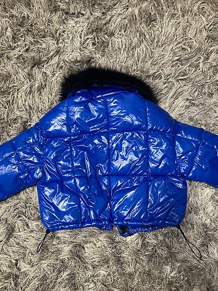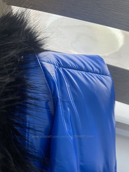 Незвичайний синій колір. Опушка не знімається. Дуже ефектна куртка!Виміри: пог-58, пoт-58, по плечах (спущені)-62, рукав-50, довжина-52.