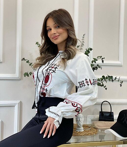 Подробное описание: Жіноча вишиванка літня сучасна мережка блуза вишита сорочка біла