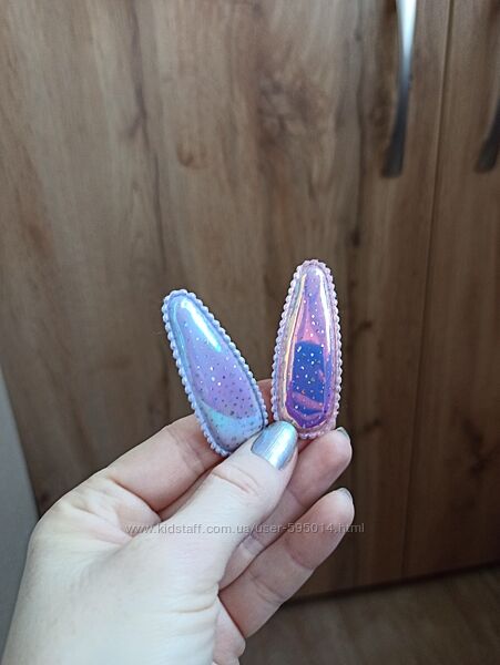 Розовая и лиловая заколки (фото 10) очень красивые, нежные, классно блестят.