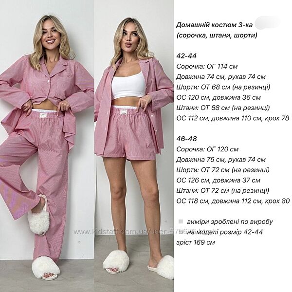 Подробное описание: 42-44, 46-48 Домашній костюм трійка сорочка, шорти, штани
