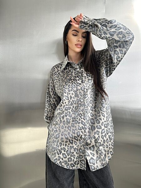 Сорочка оверсайзматеріал: турецький штапель шовк із напиленням (принт лео)
