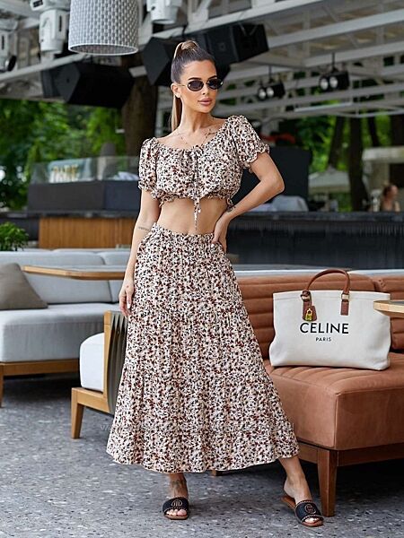 Подробное описание: 42-44, 46-48 Костюм топ та спідниця, штапель