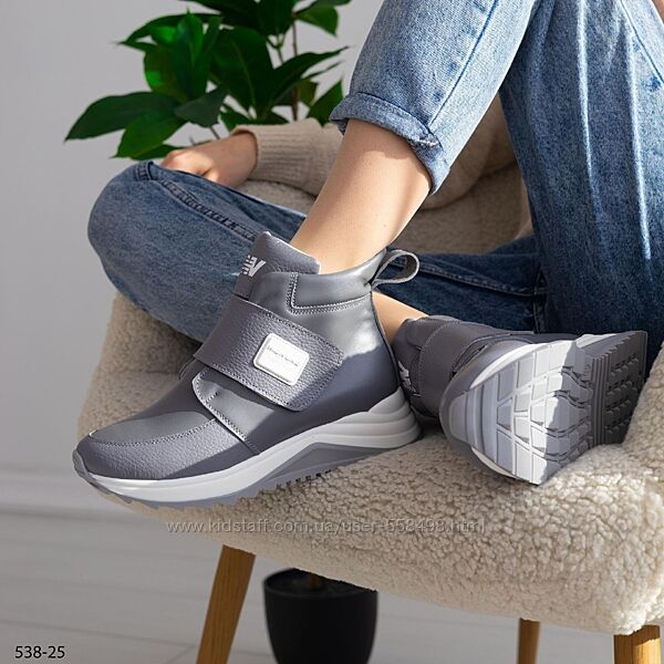 Подробное описание: Шкіряні жіночі демісезонні черевики білі та сірі