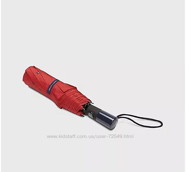 Парасолька Tommy Hilfiger, оригінал, нове. Витримайе погодні умови в класичному стилі Hilfiger. Надійна парасолька має потужну пружину і надійну вітрозахисну конструкцію. 100% поліестер.Зонт з водонепроникної тканини з пластиковою ручкою з зображенням графічного логотипу бренду по всій поверхні. Повністю автоматичний механізм системи відкривання - відкриття і закриття купола парасольки відбувається автоматично, шляхом натиснення кнопки. У складеному стані фіксується ремінцем на липучці. Розмір в закритому стані 30 см, висота у відкритому стані 56 см, діаметр - 110см.