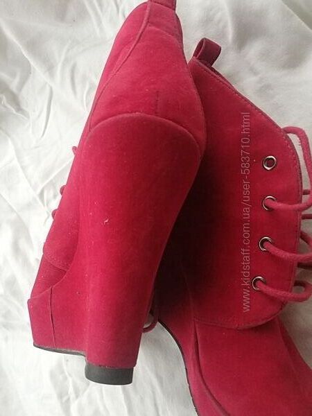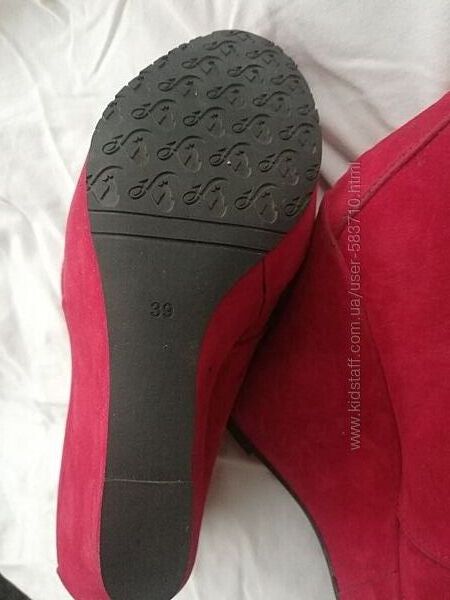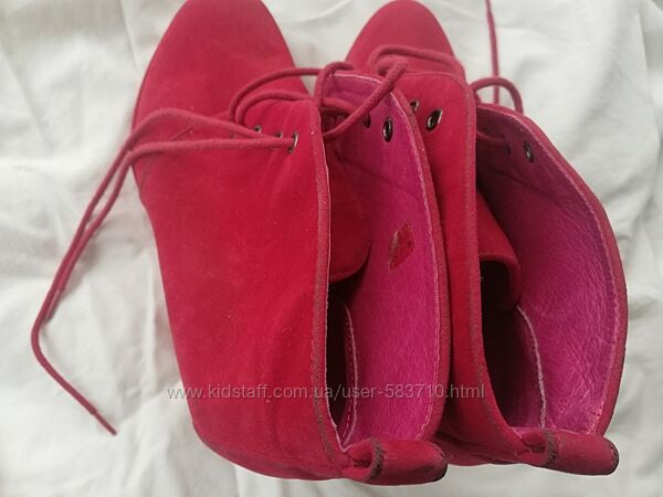 Нові повністю. Указано бу бо я виставила замість поданого товару і не можу змінить стан тепер. Нові!!! Не носила бо мені малі!!Ladystar by Diana Katzenberger. Шкіра верх і середина 100%. Колір бордовий. ціна символічна. устілка 25 см.
