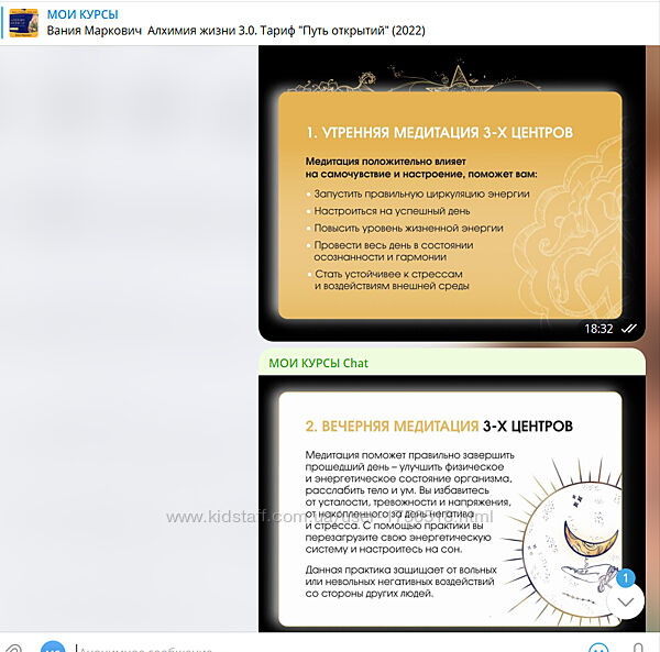 - Дополнительные материалы (гайды, чек-листы, медитации, практики)