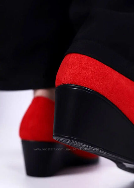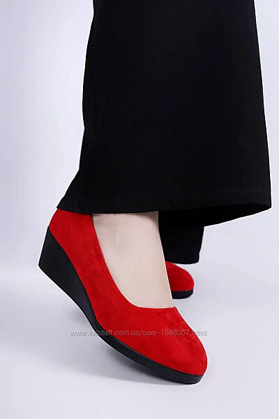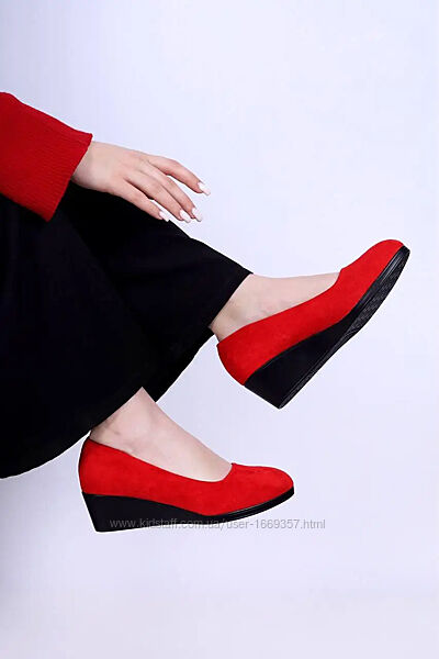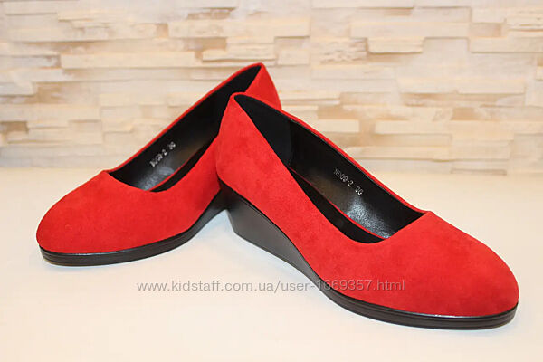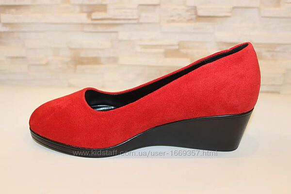 Подробное описание: Туфли женские красные замшевые на танкетке т1786