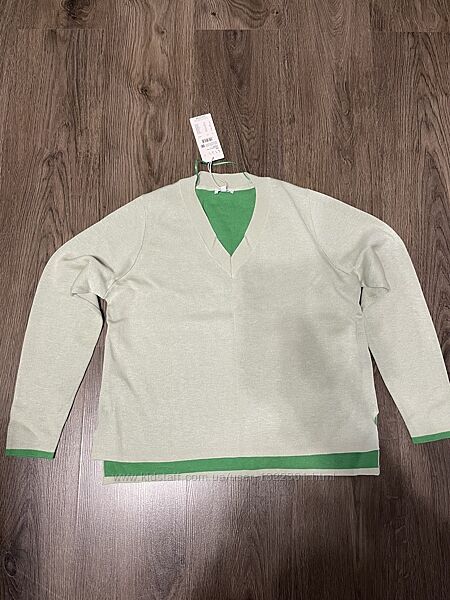 Гарний, стильний, легенький джемпер. Розмір 40, заміри по грудях напів обʼєм 52 см, довжина спереді 55,5 см, по спині 59 см, довжина рукава від плеча 58 см.