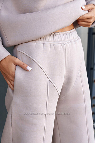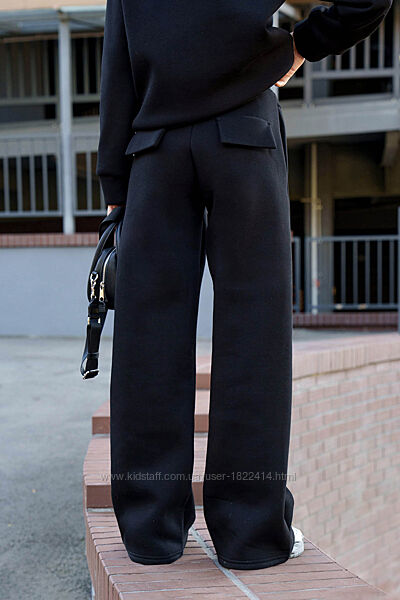 Брюки в стилі Casual з теплого футера на флісі відмінною якості (не кашлатиться). Брюки оздоблені фігурними підрізами по переду, та декоративними клапанами на спинці.
