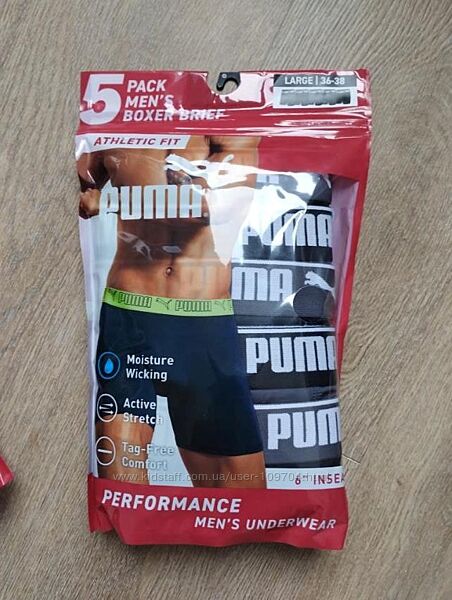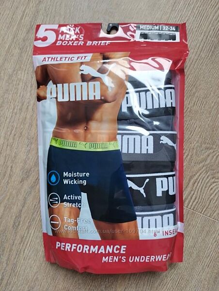 5 шт Термотрусы Влагоотводящие высокотехнологичные Puma Active Stretch Boxer Briefs Оригинал США