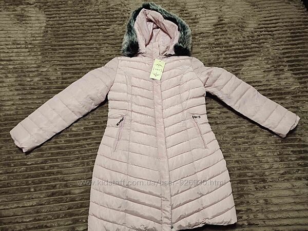 Куртка-пальто, колір-пудра, утеплювач синтепон, на холодну осінь та теплу зиму, підійде для підлітка.Капюшон та штучне хутро знімається