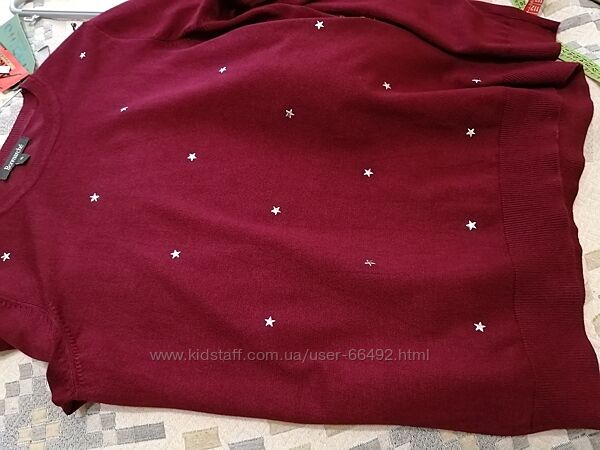 Вишневий колір, сріблясті зірочки. Прекрасний склад: віскоза 70%, нейлон 30%. М´який, зручний, приємний надотик, цей універсальний светр впишеться у будь-який гардероб.
