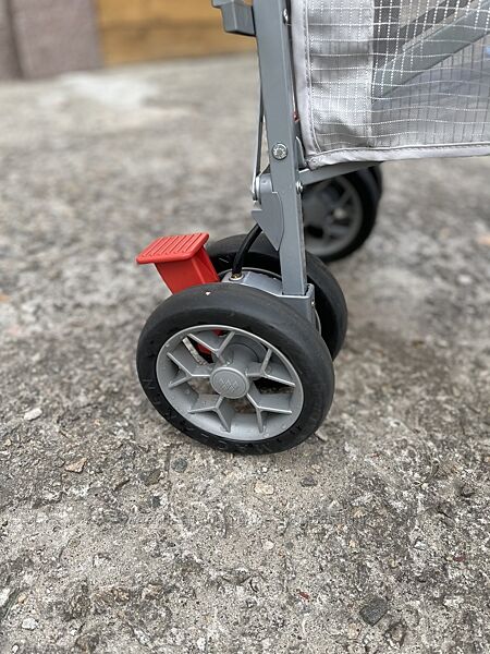 Із нюансів: вигорів колір, видно на капюшоні та там, де ніжки. Є подряпина на ручці, та видно сліди використання на колесах. Система складання та гальмування в ідеальному стані! Є захист від розкриття під час транспортування та бокова ручка.