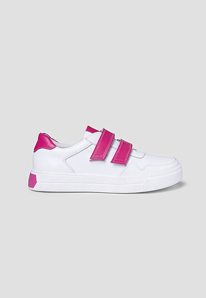 Шкіряні жіночі стильні кросівки на білих липучках з яскравими вставками. Верх: натуральна шкіра. Підкладка та устілка: текстиль та шкіра.