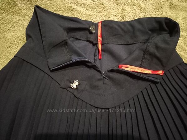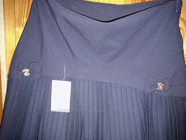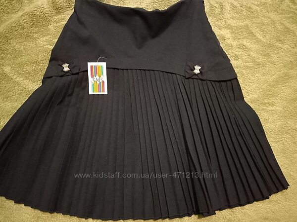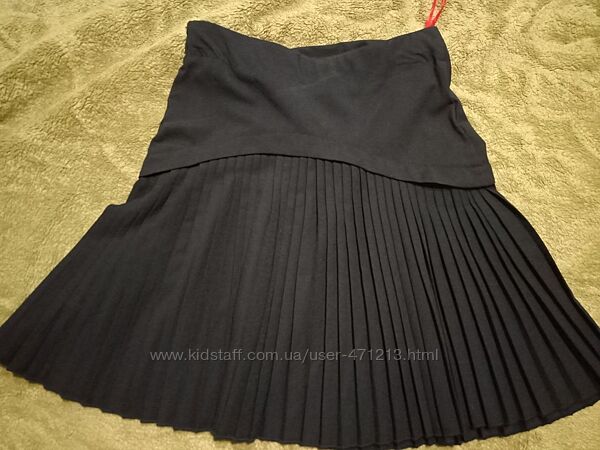 Спідниця для дівчинки. Колір темно-синій, нова (переросли). Розмір приблизно 154, але орієнтуйтеся по замірам - ширина в поясі - 32 см, довжина 45 см. Збоку на блискавці, є можливість стягувати в поясі зсередини.