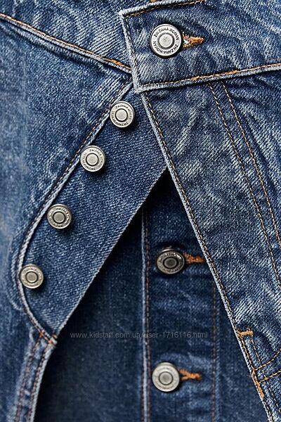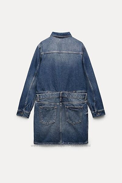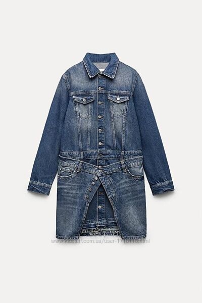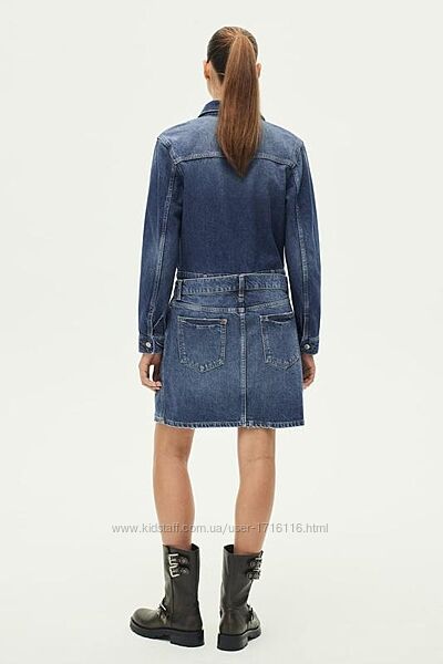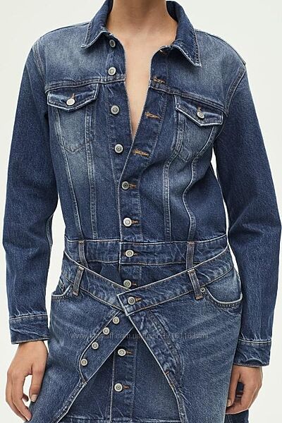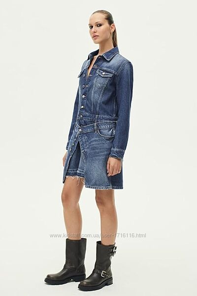 Обмена, возврата нет !Короткое джинсовое платье с воротником и длинными рукавами. Манжеты, нагрудные накладные карманы. Боковые карманы, двойная юбка. Асимметричный пояс, необработанные кромки. Застегивается на металлические пуговицы.