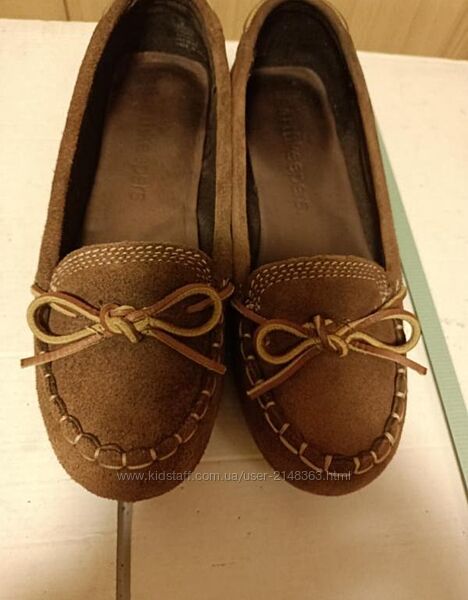 Оригінальні замшеві мокасини, лофери, туфлі фірми Timberland (Тімберленд). Дуже зручні і практичні. Розмір 36, на коробці вказано 35,5, підійдуть на наш 35-36. На не широку ніжку, довжина 23 см, ширина 8, зовні натуральна замша, всередині натуральна шкіра,підошва поліуретан.Стан на фото.Товари пересилаю Укрпоштою або Новою поштою після оплати на картку.Відправка по всій Україні НП і УП.
