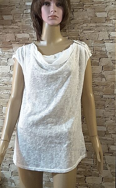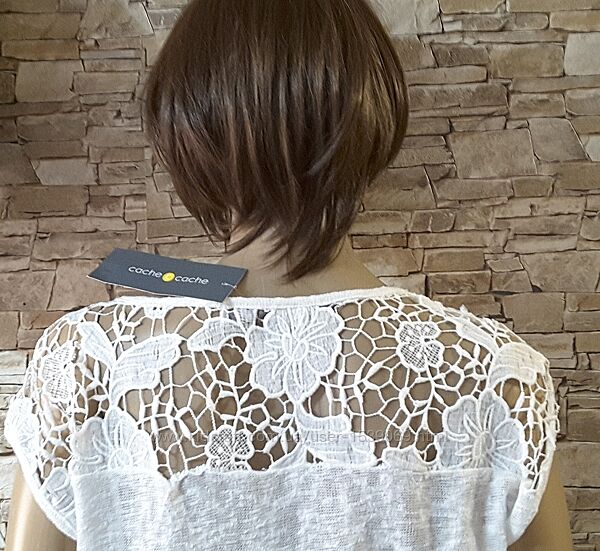 Блузка з мереживною вставкою, р. L, французького бренду Cache .В результаті поєднання цих волокон блуза еластична, м´яка, легка, зносостійка, що не втрачає колір у процесі експлуатації.