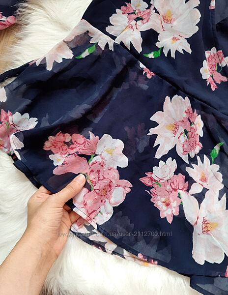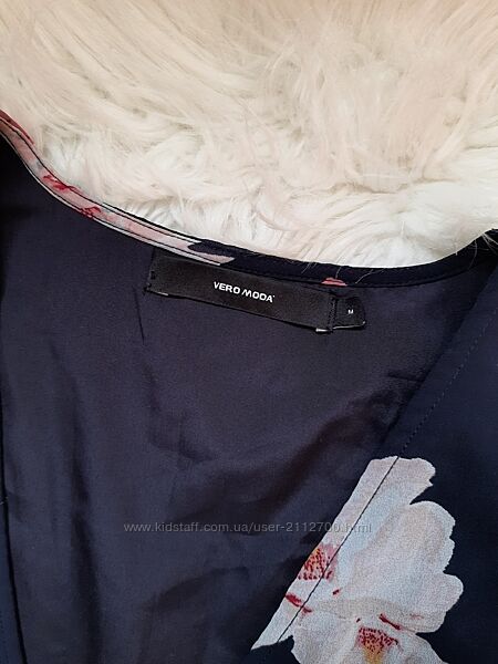 Подробное описание: Шикарна шифонова синя блуза на запах в квіти з баскою Vero Moda